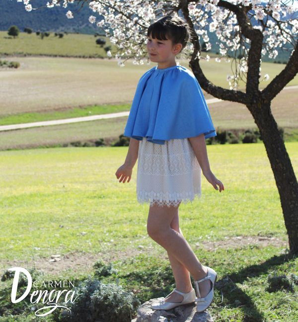 Capa para niña confeccionada en Rustick celeste (a la vista parecido al lino)