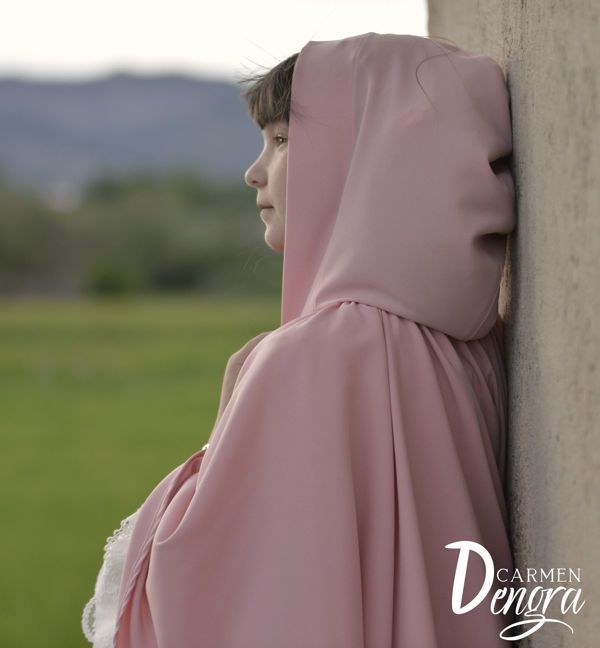 Capa para niña confeccionada en crep fino bielástico color rosa maquillaje.