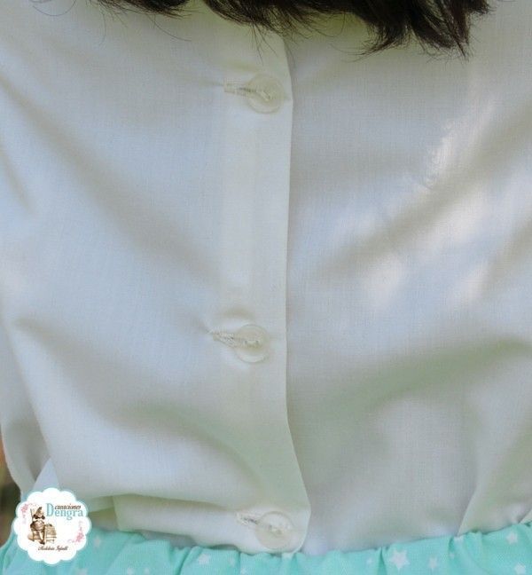 Camisa de niña con tirantes y lazo de raso , abotonadura completa a la espalda.