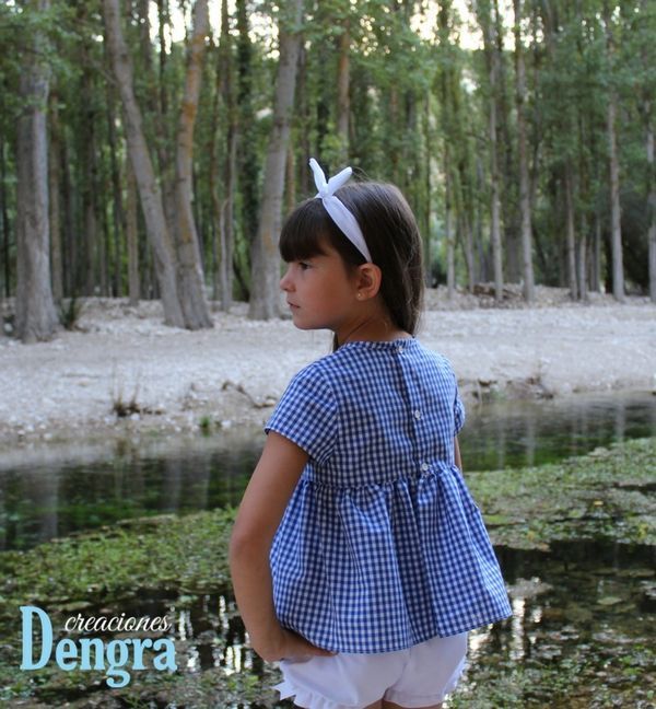 Camisa de niña confeccionada en vichy con cuerpo de vuelo.